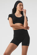 Seamless Ribbed Cropped Serene Short Sleeve - Black