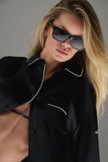 Courchevel Silk Button Down - Black/Ivory