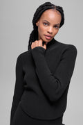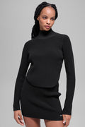 Elevated from every angle. The Denim Knit Backless Long Sleeve is the perfect study in contrasts—structured up front, unexpected in back. With its sleek high neckline and daring open-back silhouette, this top blurs the line between elegance and ease. It’s crafted from a ribbed fabric that’s reminiscent of denim, but has the feel of your favorite knit. The close fit skims the body while the back cutout reveals just enough, creating a look that’s as refined as it is bold. Pair it with the Denim Knit High-Waist Skirt for a chic look for any night out.