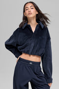 Ribbed Velour Cropped Mountain Side Jacket - Navy