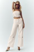 Wool Blend Nightcap Wide Leg Pant - Cafe Au Lait
